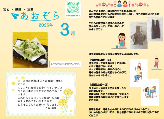 このたび約2年ぶりに職場へ復帰しました。久しぶりに皆様とお会いでき、やっぱりこの仕事が好きだなと改めて感じています。これからも安心してご相談いただけるよう努めてまいりますので、どうぞよろしくお願いいたします。 休んでいる間に、編み物とヨガ...